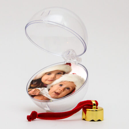 Jõulukuulid on plastikust ja punase paela otsas. Kuuli sisse saad valida just sellised pildid nagu soovid ja mis on eriti hea, järgmisel aastal saad sa väga hõlpsalt jõulukuuli sees olevad pildid välja vahetada.