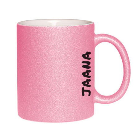 Kruus on saadaval seitsmes erinevas värvitoonis, milleks on: hele- ja tumesinine, hele- ja tume kuld ning roosa, lilla ja hõbe. Tassi ühele poolele, kus näed kirja “GLITTER GIRL” saad panna täpikirjas just sellise sõnumi nagu sa ise soovid, teisele poole käib kruusi omaniku nimi.