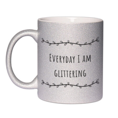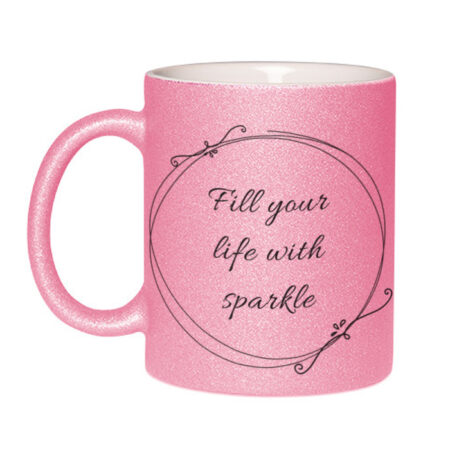 Kruus on saadaval seitsmes erinevas värvitoonis, milleks on: hele- ja tumesinine, hele- ja tume kuld ning roosa, lilla ja hõbe. Tassi ühele poolele, kus näed kirja “GLITTER GIRL” saad panna täpikirjas just sellise sõnumi nagu sa ise soovid, teisele poole käib kruusi omaniku nimi.