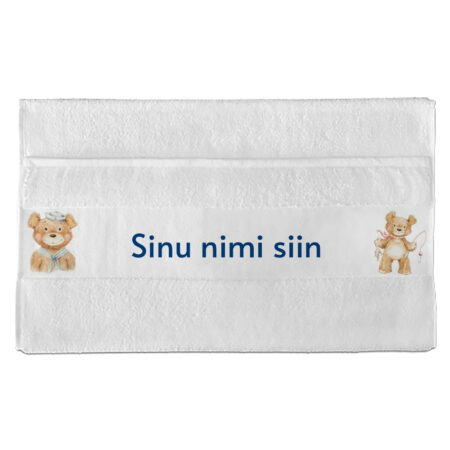 Kvaliteetne kapuutsiga rätik, millele saad peale panna oma lapse nime ja valida taustaks paljude erinevate variantide seast armsa taustapildi.