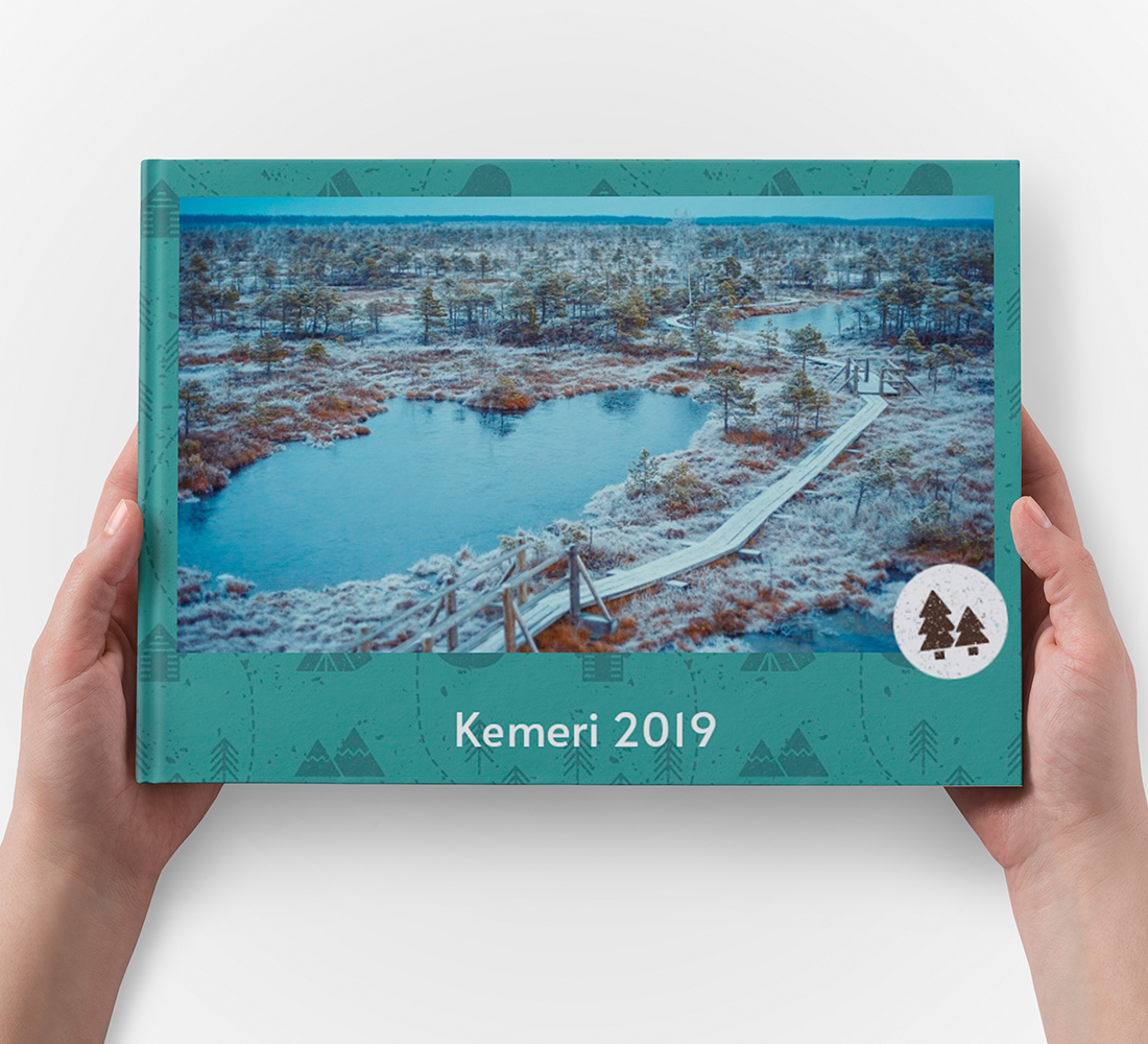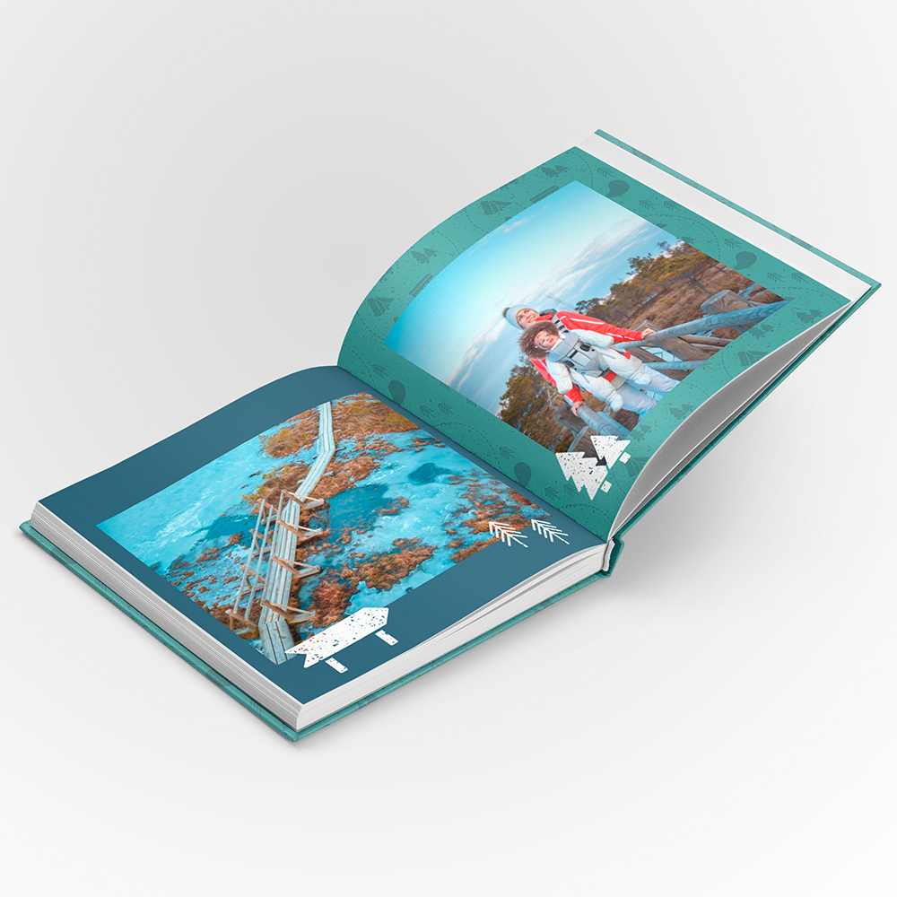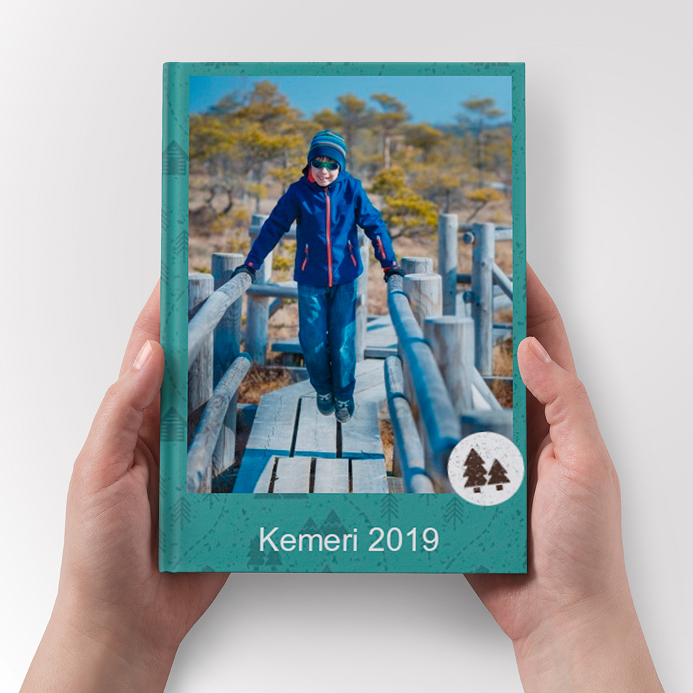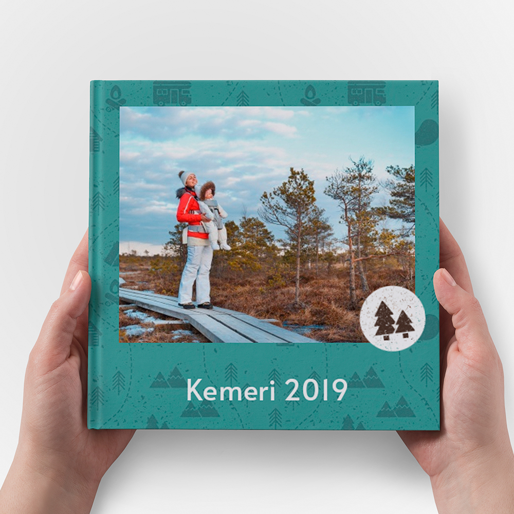 Vahva matkamisega seotud elementidega fotoraamat, mille kaanele saab panna pildi ja pealkirja vastavalt sinu soovile.