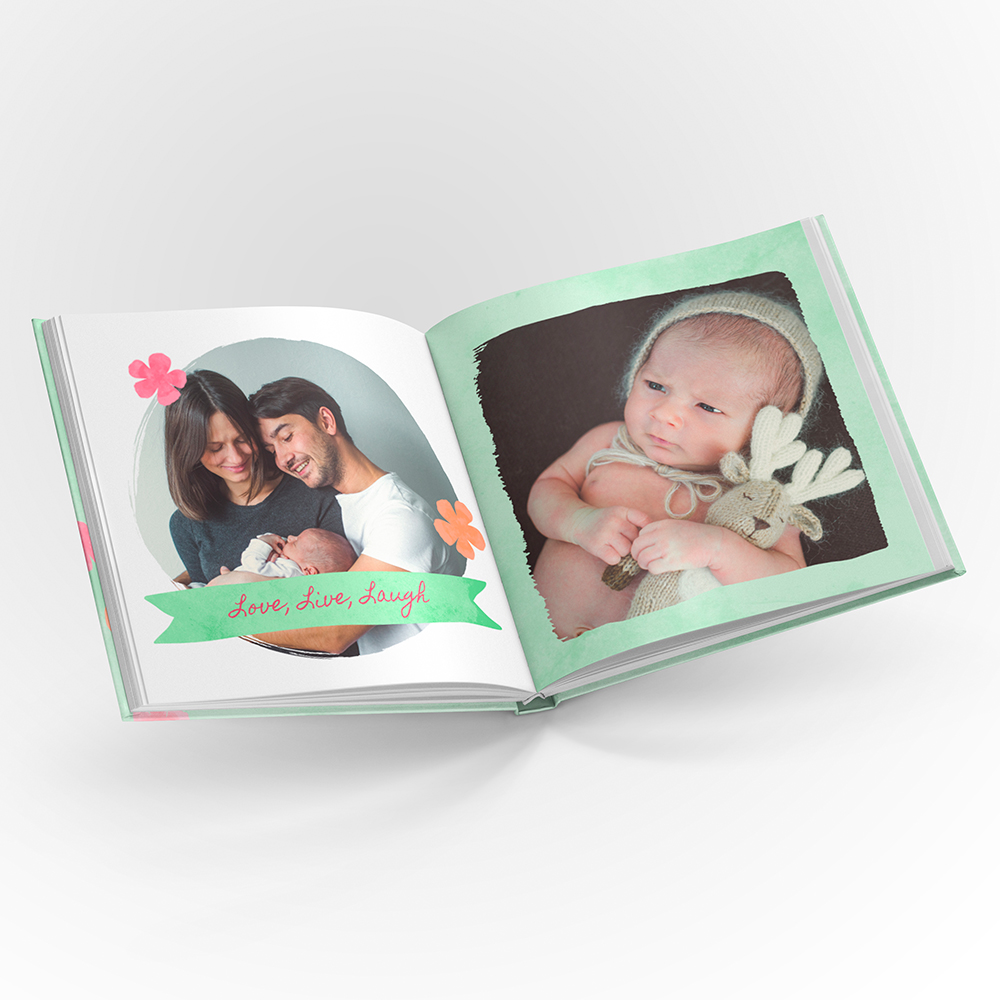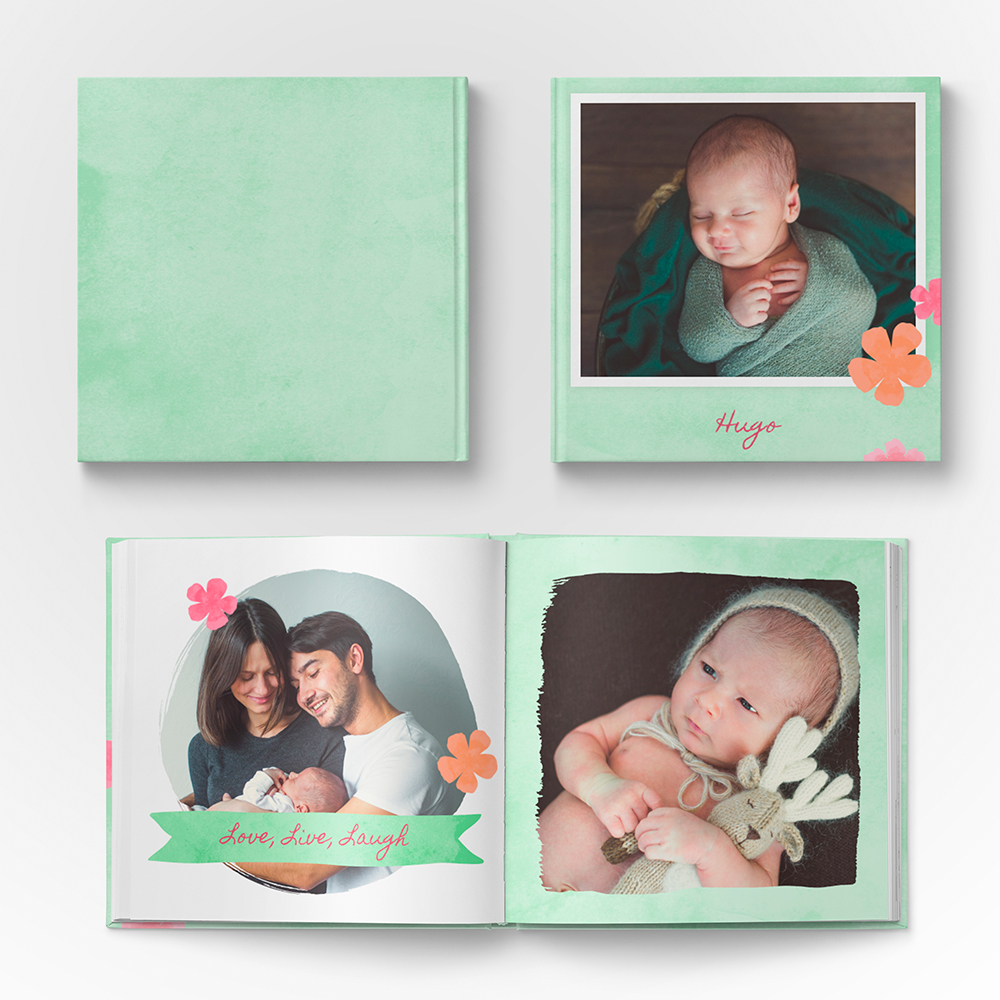 Armas justkui vesivärvidega värvitud fotoraamat, mille saad valida, kas rohkem poisilikuma tooniga või tüdrukule omases värvitoonis. Kaanele läheb sinu lapse pilt ja nimi.