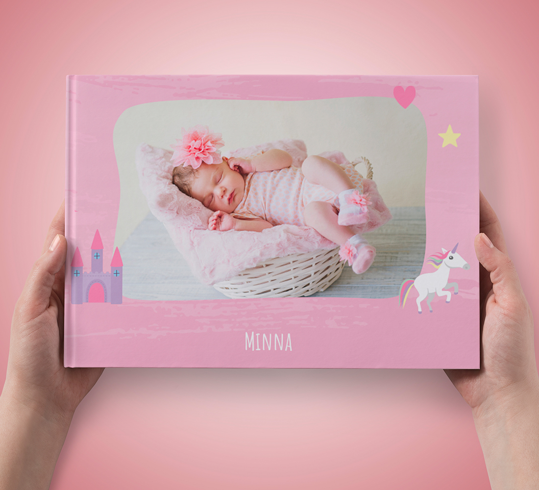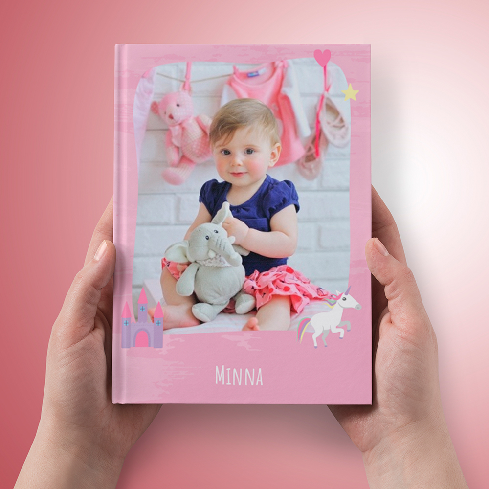 Fotoraamat tõelisele väiksele printsessile, mille kaanele saab panna sinu lapse pildi ja nime.