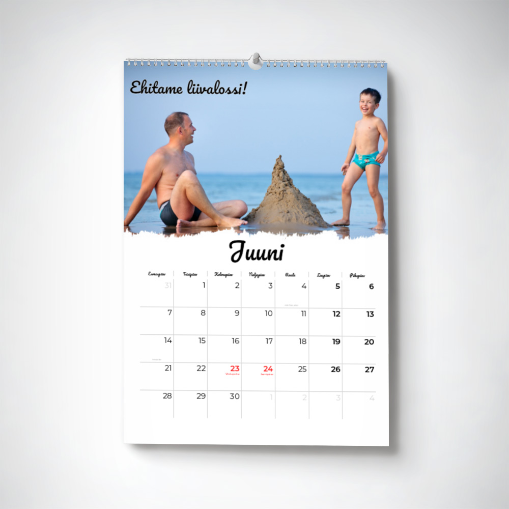 A3 püstine kalender, kalendrisse saad lisada 13 pilti (12 kuud + kaas) ning tekstid, mida isa võiks (loe: peaks) lapsega konkreetsel kuul teha.