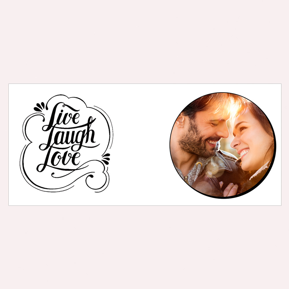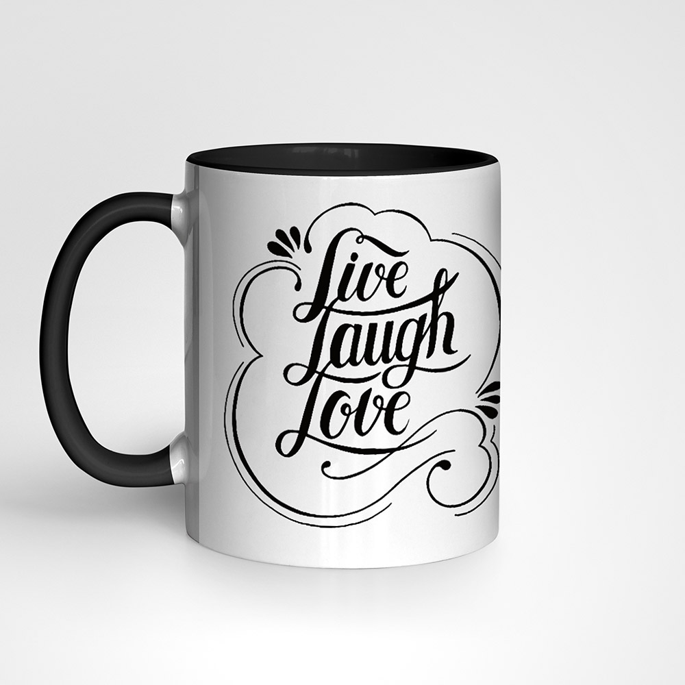 Populaarse mõtteteraga LIVE LAUGH LOVE ehk ELA NAERA ARMASTA kruus, mille juurde sobib hästi lisada üks positiivse alatooniga pilt.