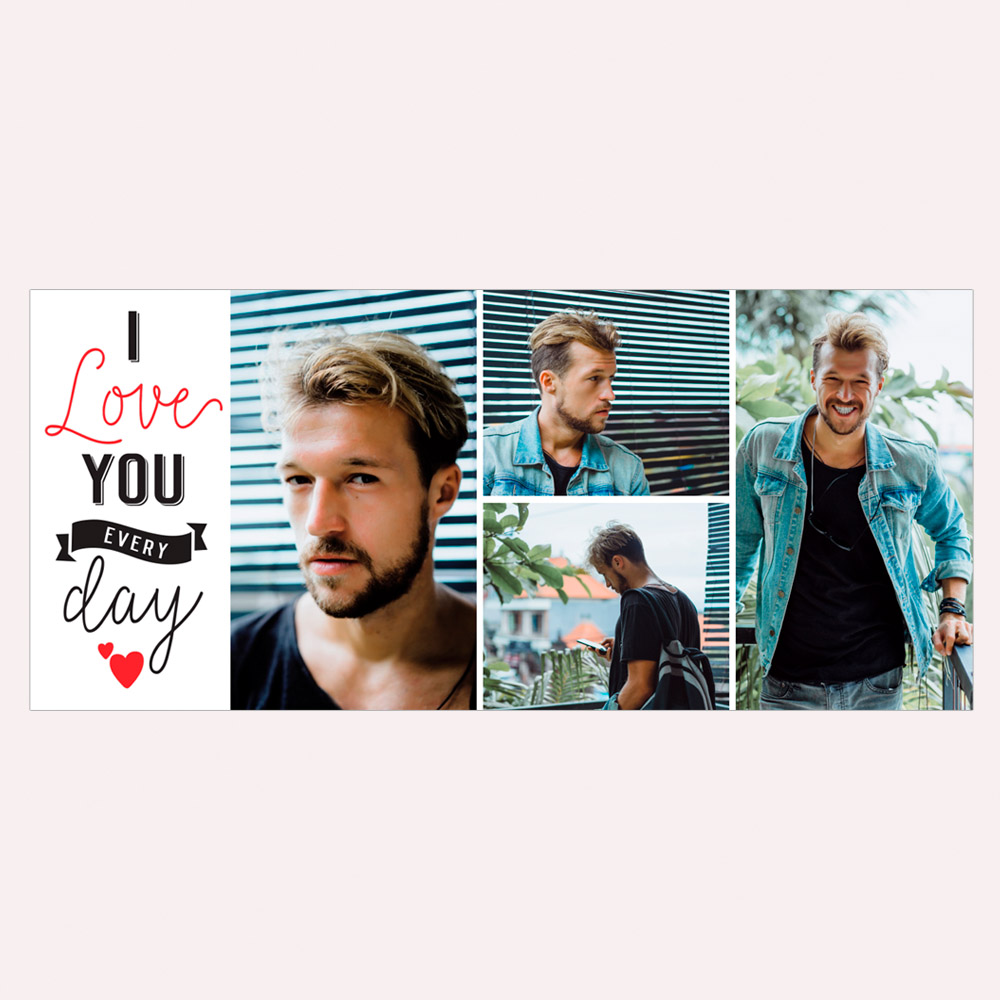 Kollaažiga kruus tekitab alati palju emotsioone, kuna see disain annab sulle võimaluse panna kruusile mitmeid ägedaid hetki. Lisaks on oma pildiga kruusi peal ilus sõnum: “I LOVE YOU EVERY DAY” ehk eesti keelde tõlgituna “Ma armastan sind iga päev”. Seetõttu sobib see tass eriti hästi kinkimiseks enda kallimale valentinipäevaks.
