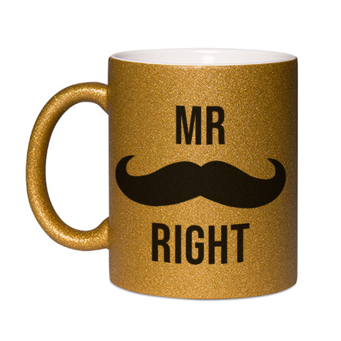 Kruus on saadaval seitsmes erinevas värvitoonis, milleks on: hele- ja tumesinine, hele- ja tume kuld ning roosa, lilla ja hõbe. Tassi ühel poolel on vuntsid koos sõnumiga “MR RIGHT” (tõlgituna “HÄRRA ÕIGE”), teisele poole saad panna näiteks kruusi omaniku nime.
