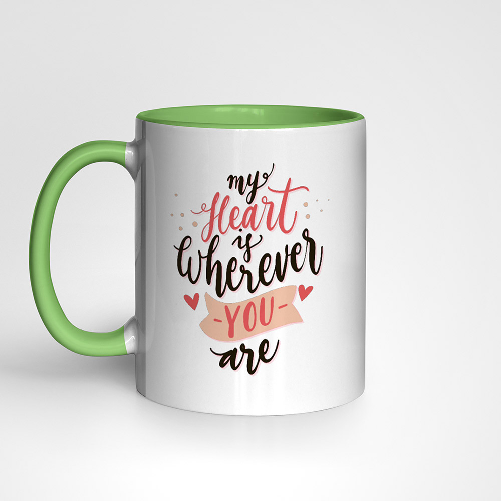 Kauni mõtteteraga (My heart is wherever you are. / Mu süda on seal, kusiganes sina oled.) kruus, mida saad veel kaunistada enda valitud fotoga. Ideaalne kingitus kallimale valentinipäevaks tuletades talle iga päev meelde, mida sa talle tähendad!