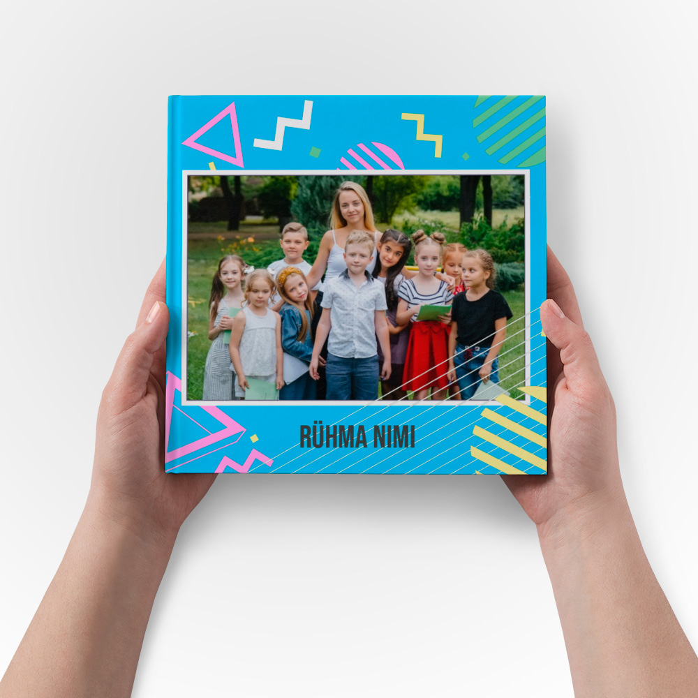 Loo sinine rühmaraamat värviliste kujunditega.