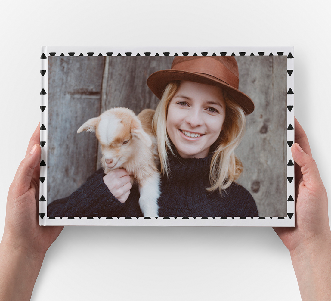 Stiilne ent lihtsa mustriga fotoraamat, mille kaanele saab panna sinu valitud pildi ja pealkirja