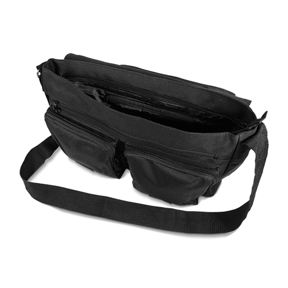 Mahukas musta värvi õlakott, millega on hea sülearvutit, mappe, dokumente jms kaasas kanda. Lisaks on kotil ka kolm väiksemat lukuga sahtlit.