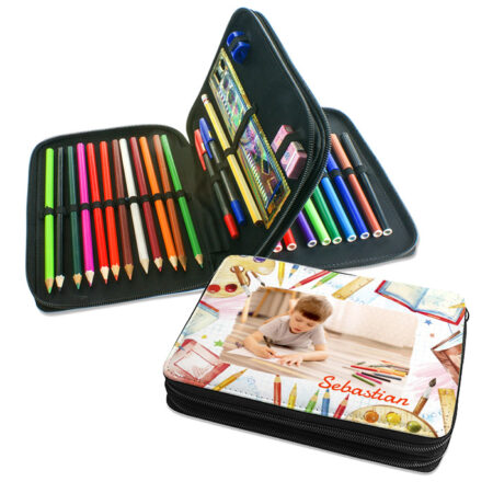 - Pinal sisaldab: värvipliiatsid, viltpliiatsid, pastapliiatsid, joonlaud, pliiatsiteritaja, kustukumm
