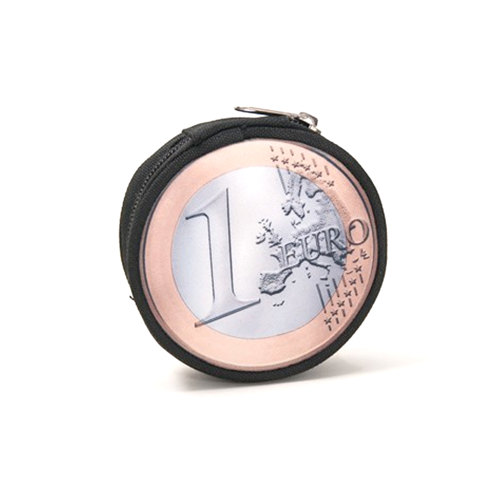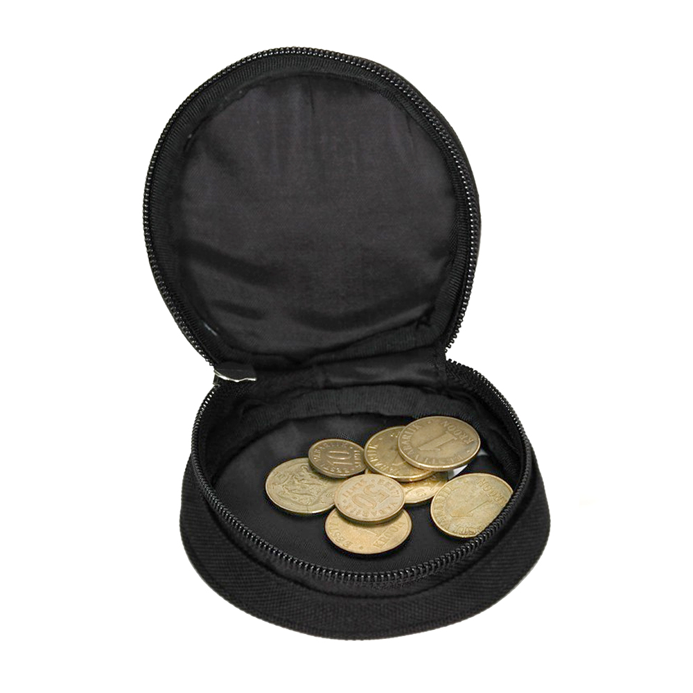 Ümmarguse vastupidavast tekstiilist valmistatud musta värvi rahakoti läbimõõt on 10 cm.
