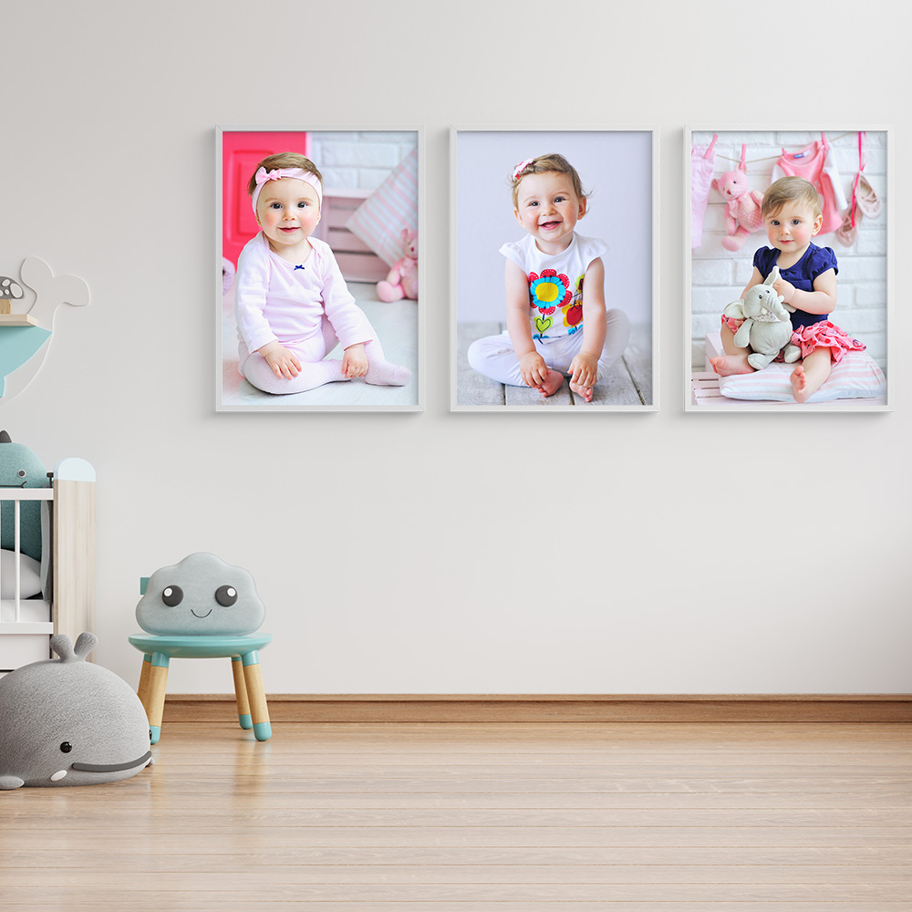 Foto suuruse ja formaadi saad valida mitme erineva variandi seast. Kombineerida võid ühte ruumi ka näiteks erinevate suuruste ja formaatidega pilte.