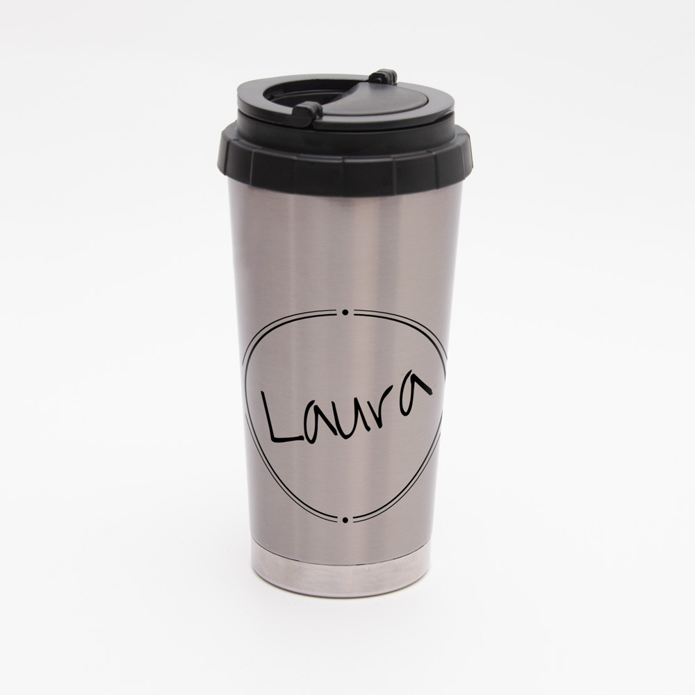 Termoskruus on roostevabast terasest, kraapimiskindla trükiga.