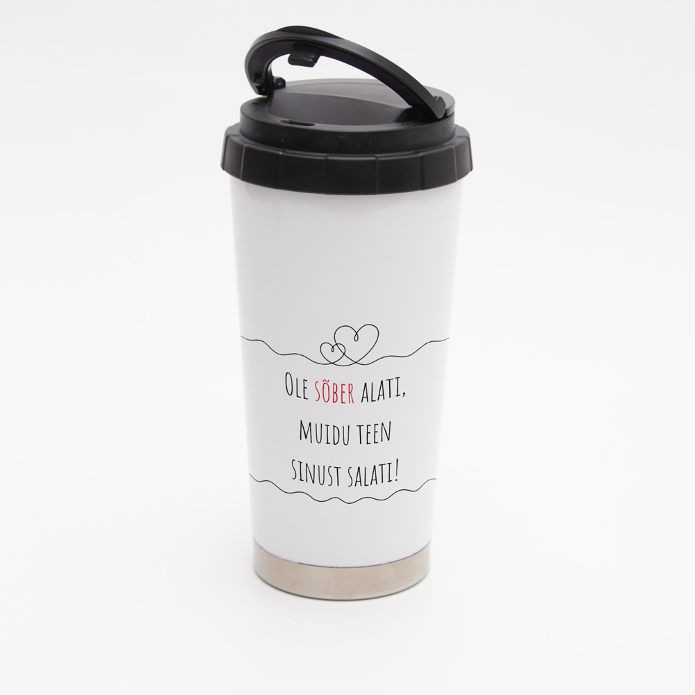 Termoskruus on roostevabast terasest, kraapimiskindla trükiga.