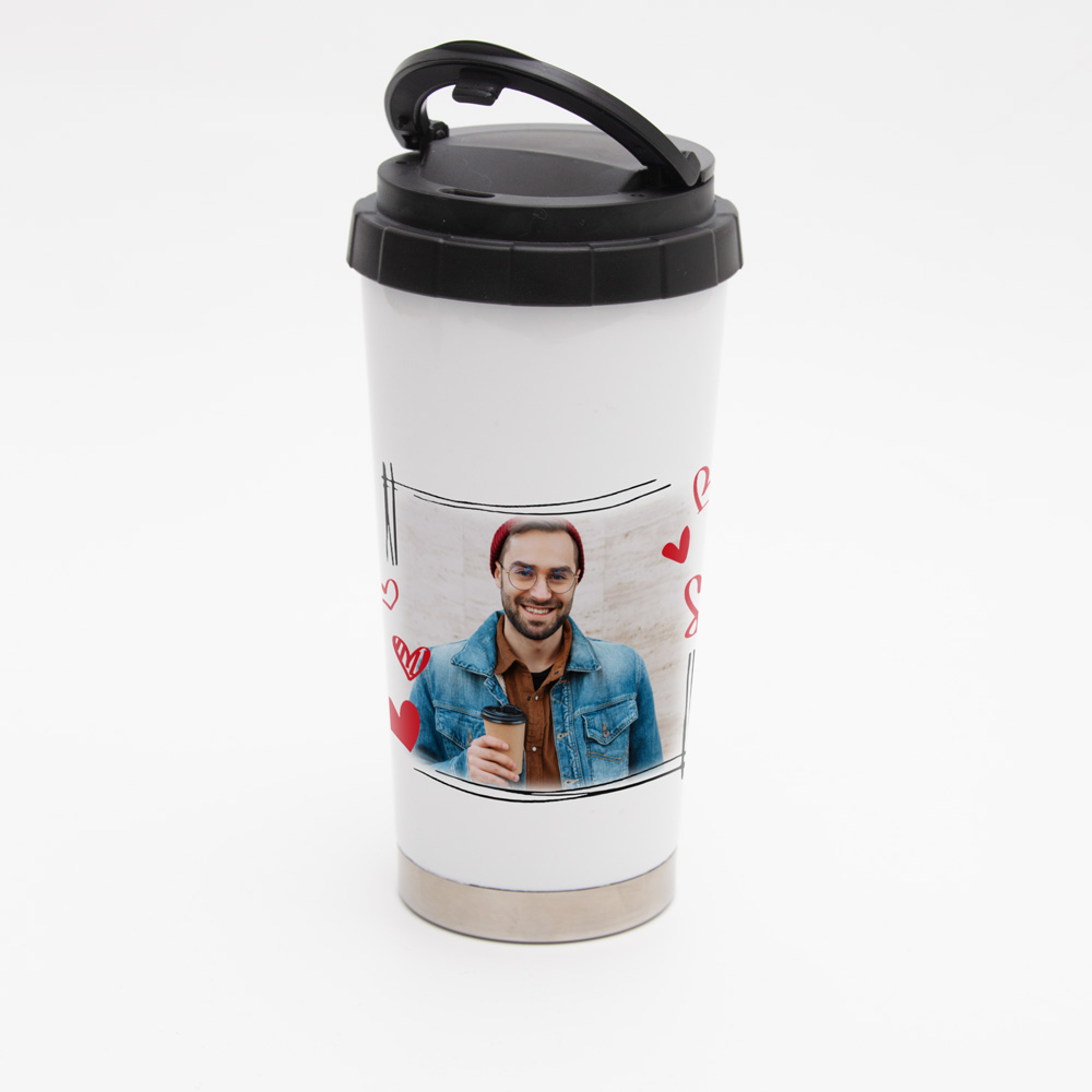 Ilusal väikeste südametega kaetud kruusi pind, mille kesel oleva suure südame sisse saad lisada pildi endast, oma lähedasest või teist koos. Tassi teisele poole saad panna teksti omal valikul.